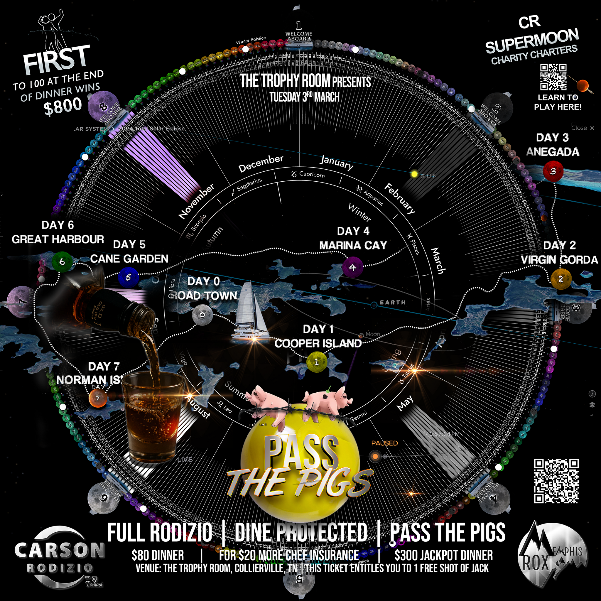 The Supermoon Supper Series is a traveling culinary experience created by CR Charity Charters, bringing people together under the brightest moons of the year. Each supper is one of 216 intimate gatherings, designed to mirror the 216 charity voyages planned through the British Virgin Islands. Hosted by inspired leaders and shared with their closest friends, these dinners blend fire-to-face cooking, storytelling, and purpose.
